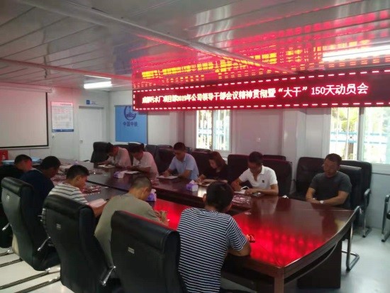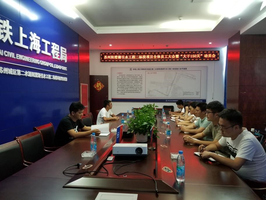 蘇州陽澄湖引水工程二標段項目部:組織項目部全體員工宣貫公司會議精神,并召開“大干150天”活動動員會,結(jié)合項目實際情況對后5個月的工作進行了安排部署:一是根據(jù)公司“大干150天”活動施工生產(chǎn)計劃,詳細制定頂管、沉管施工工期節(jié)點,明確大干期間工作任務。二是深入施工現(xiàn)場查缺補漏,確保人、機、料在大干期間滿足施工生產(chǎn)需求,保證工程進度、質(zhì)量、安全全部達標。三是項目全體員工要有緊迫感,打起百分之百的精神,干好本職工作,借大干150天熱潮,完成公司下達的產(chǎn)值指標。(秦旖旎)