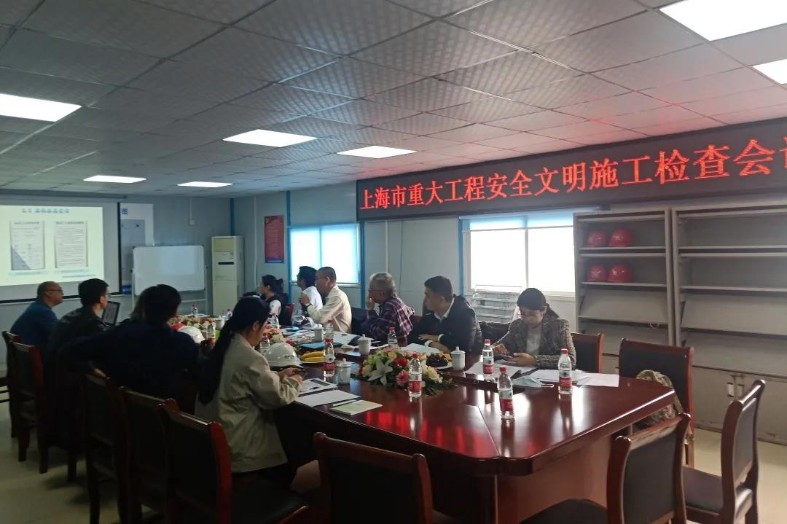 重大辦檢查組一行實地察看了項目建設情況、安全文明施工情況及項目整體風貌。隨后,檢查組一行來到項目部會議室,聽取了項目負責人對項目內業管理、質量管理、安全管理、宣傳教育、衛生防疫、環境保護等方面的詳細匯報。期間,水務局領導肯定了項目部在安全文明施工管理中采取的“四新”技術運用、深化BIM技術運用、智能化管理等先進措施。針對項目部文明工地創建工作,檢查組要求項目部進一步加強內業資料的管理,盡快完善相關資料,并對項目爭創上海市水務建設工程文明工地表示期待。