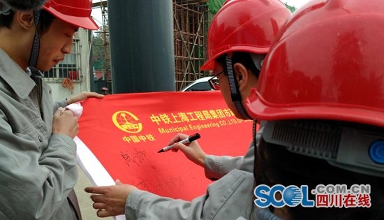 成都地鐵7號線二標正在緊張施工,作為該標段施工企業(yè)中鐵上海局21日啟動了“首屆廉潔文化宣全周”活動。現(xiàn)場,還進行了廉潔從業(yè)承諾簽名。