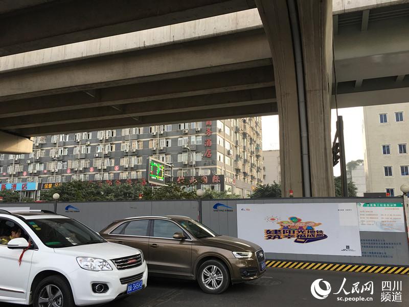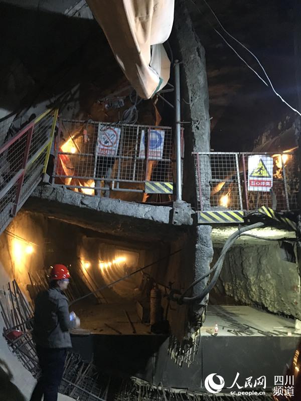 在成都二環路北一段高架橋的下方,地鐵七號線西南交大站—九里堤站的隧道正在施工,橋基從隧道旁“擦肩而過”,最近的地方僅有2.8米。為了保證路面交通暢通和高架橋的穩定,地鐵施工放棄盾構機,首次采用雙側壁導坑法分六步,人工開挖。