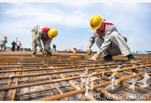 3月22日,中鐵上海工程局的施工人員在武漢北湖污水處理廠項(xiàng)目工地上作業(yè)。
